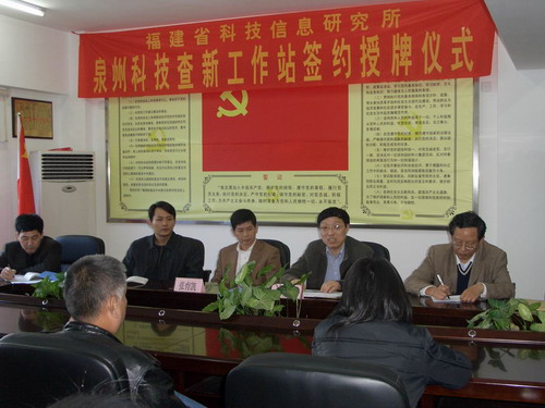 3月21日,“福建省科技信息研究所泉州科技查新工作站”在泉州市科技信息研究所設(shè)立(服務(wù)區(qū)域包括泉州市所轄的11個(gè)縣(區(qū)、市)及泉州經(jīng)濟(jì)技術(shù)開(kāi)發(fā)區(qū))。福建省科技信息研究所所長(zhǎng)朱祥枝博士為“泉州科技查新工作站”授牌。至此,福建省科技信息研究所已在福州、三明、泉州3個(gè)設(shè)區(qū)市科技信息(情報(bào))所設(shè)立了“科技查新工作站”。