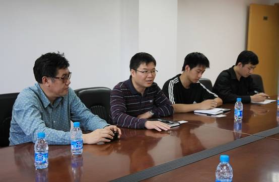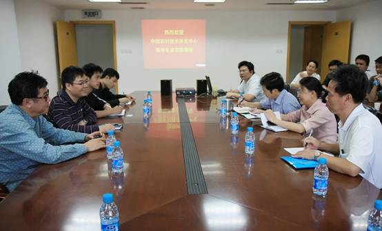 圖:科技部中國農(nóng)村技術(shù)開發(fā)中心星火與信息處袁學(xué)國博士(左二)和農(nóng)村黨員干部遠(yuǎn)程教育《農(nóng)村科技》節(jié)目總編焦林(左一)一行