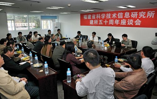 2010年10月29日,福建省科學(xué)技術(shù)信息研究所召開建所五十周年座談會。離退休所領(lǐng)導(dǎo)葉鐵樹、張玲、王惠萍、林從漢等和所中層以上干部參加了座談會。座談會由朱祥枝所長主持。