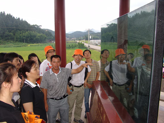 參觀八一紀(jì)念亭,學(xué)習(xí)胡錦濤總書記視察八一村時(shí)所作的“政策好,天幫忙,還得靠人努力”的重要指示