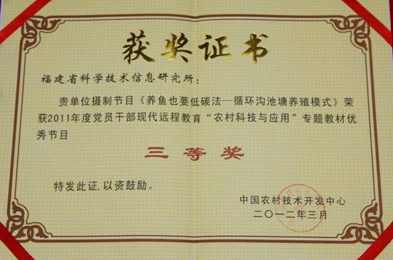 日前在科技部農(nóng)村中心組織召開的2012年科技部黨員干部現(xiàn)代遠(yuǎn)程教育專題教材制播工作會議上,信息所去年報送的電視專題片《養(yǎng)魚也要低碳法—循環(huán)溝池塘養(yǎng)殖模式》、《農(nóng)村沼氣的后勤兵》分獲三等獎和優(yōu)秀獎。
