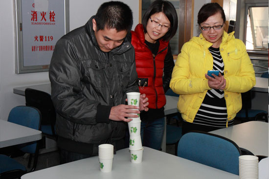 下午3點,活動正式拉開帷幕,參加活動的同事們個個躍躍欲試,各顯神通,現(xiàn)場到處歡聲笑語、熱鬧非凡!八洗登颉北妒芮嗖A,同事們一個個是面紅耳赤吹得不亦樂乎;“紙杯搭塔”活動中,在現(xiàn)場營造的緊張氣氛下,參加活動的同事們更是心抖手抖尖叫不停;“衣架連連看”的現(xiàn)場亦是屏吸靜氣小心翼翼;參加“男女雙人背夾氣球跑步競賽”的同事們更是將彼此的默契發(fā)揮到了極致;“蒙眼點金”的某同事在吳同事的一路“正確”指導(dǎo)下找不著北的一氣狂亂,在游戲玩樂之余也為大家增添不少喜趣。同事們盡情享受著親身參與每個項目帶來的快樂,當(dāng)然在這同時,獎品也不能少,所工會為每個項目都設(shè)置了一二三等獎,不少同事真可謂是精神物質(zhì)雙豐收。