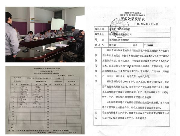 福州萱裕公司屬東南汽車(chē)配套廠,于2002年應(yīng)東南汽車(chē)要求導(dǎo)入ERP系統(tǒng),目前已在廣州、鄭州、武漢、大連四個(gè)城市設(shè)立分工廠。隨著公司的發(fā)展,原來(lái)的管理流程已不適用。福建省工業(yè)設(shè)計(jì)產(chǎn)業(yè)創(chuàng)新戰(zhàn)略聯(lián)盟,受福州萱裕金屬委托,為其公司ERP系統(tǒng)做體檢。我聯(lián)盟于8月份開(kāi)始通過(guò)走訪、調(diào)研等方式對(duì)萱裕公司各部門(mén)做全方位診斷及分析,并提供診斷報(bào)告。福州萱裕根據(jù)診斷報(bào)告做了相應(yīng)的整改,如業(yè)務(wù)流程的重新梳理、ERP升級(jí)優(yōu)化以及SOP手冊(cè)的建檔。經(jīng)過(guò)4個(gè)多月的調(diào)整及流程改造,萱裕公司的管理有了很大的提升,據(jù)萱裕管理部門(mén)統(tǒng)計(jì):1. 公司庫(kù)存下降43.3%。2.延期交貨減少81.2%。3.采購(gòu)提前期縮短50%。4.停工待料減少70%。5.制造成本降低13.5%。6.管理水平提高,生產(chǎn)能力提高12%。
