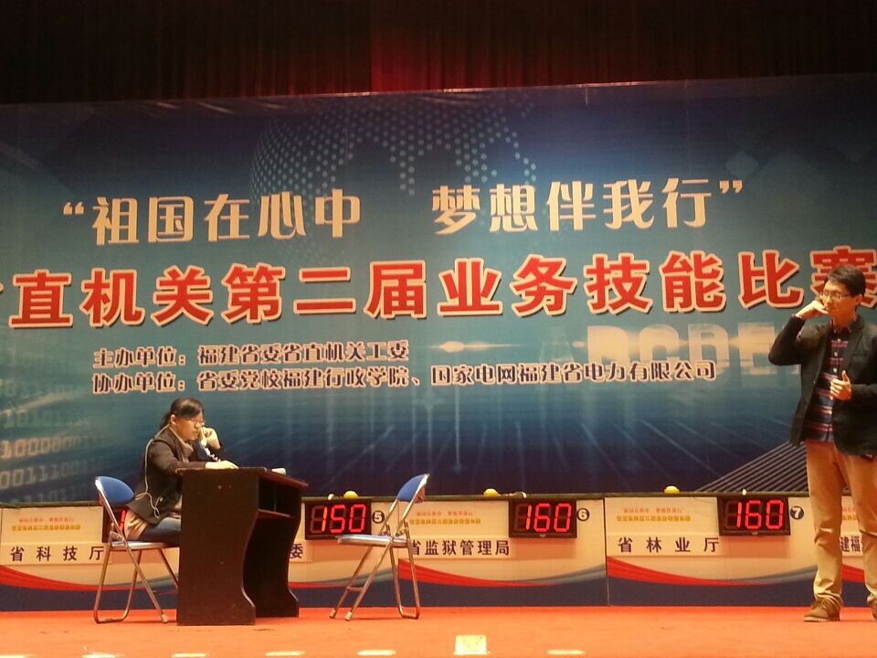為持續(xù)在省直機關(guān)營造濃厚的學(xué)習(xí)氛圍,促進廣大黨員干部綜合能力和整體素質(zhì)的不斷提升,省直機關(guān)工委于12月1日在省委黨校福建行政學(xué)院舉辦“祖國在心中、夢想伴我行”省直機關(guān)第二屆業(yè)務(wù)技能比賽。我所王仲武、陳心威、李敏三位同志代表省科技廳參加小品部分的表演比賽。小品結(jié)合了單位的工作職責(zé),緊密聯(lián)系工作實際和業(yè)務(wù)技能,充分展示了黨員干部立足崗位、創(chuàng)先爭優(yōu)、文明和諧、積極向上的精神風(fēng)貌和業(yè)務(wù)技術(shù)水平。