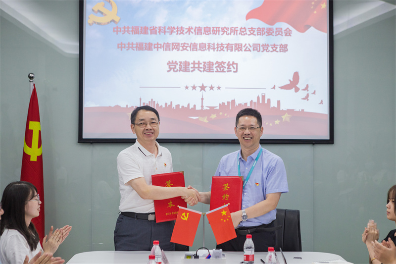 6月16日,我所黨總支帶領(lǐng)所青年干部一行赴福建中信網(wǎng)安信息科技有限公司( 簡稱“中信網(wǎng)安公司”),開展“黨建引領(lǐng) 科技創(chuàng)新”主題黨日活動暨“支部結(jié)對共建促提升”簽約活動。