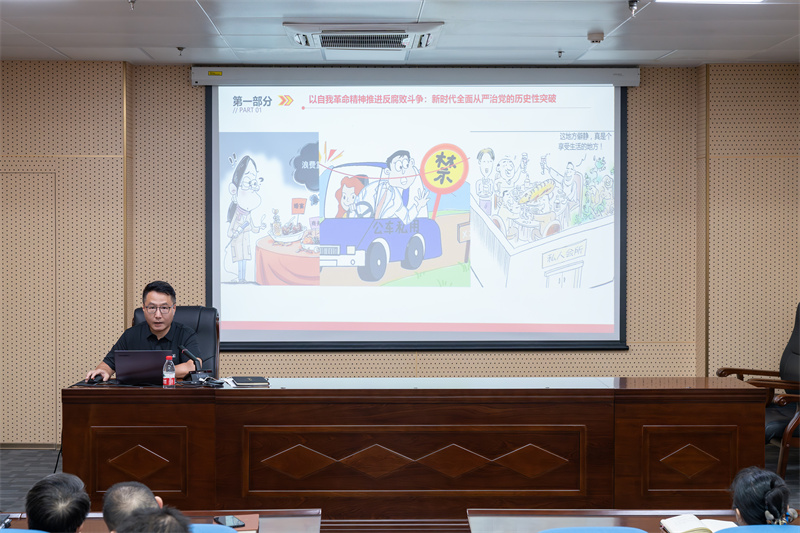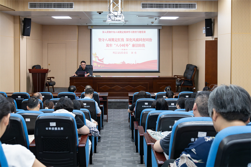 6月27日,為深入貫徹中央八項規(guī)定精神,鞏固深化黨紀學習教育成果,推進作風建設常態(tài)化長效化,所黨總支紀檢委員、副所長劉勇同志以“堅守八項規(guī)定紅線 深化風腐同查同治——筑牢“八小時外”廉潔防線”為題,教育引導全所黨員和中層領導干部筑牢拒腐防變思想防線。