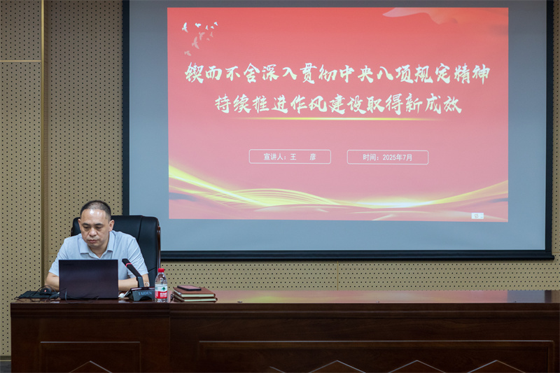 7月18日,所黨總支組織委員、第三黨支部書記、副所長王彥以《鍥而不舍深入貫徹中央八項規(guī)定精神持續(xù)推進作風(fēng)建設(shè)取得新成效》為題,為其所在支部黨員及分管部門的干部職工上了一堂深刻而生動的黨課。