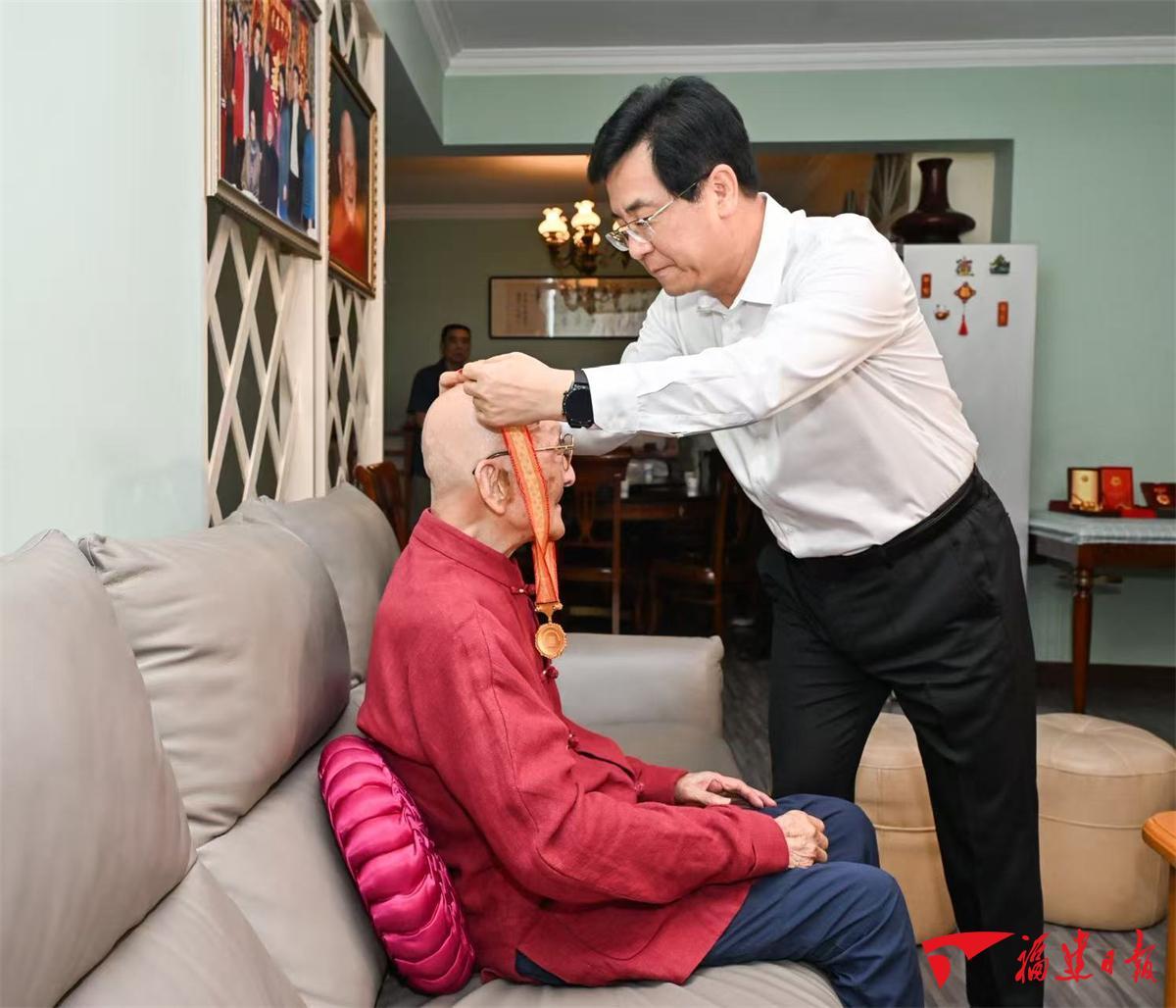 今年是紀念中國人民抗日戰(zhàn)爭暨世界反法西斯戰(zhàn)爭勝利80周年。8月25日,省委書記、省人大常委會主任周祖翼,省委副書記、省長趙龍,省委副書記、福州市委書記郭寧寧等省領(lǐng)導在福州看望慰問抗戰(zhàn)老戰(zhàn)士代表,頒發(fā)“中國人民抗日戰(zhàn)爭勝利80周年”紀念章,并代表省委、省政府向他們致以崇高敬意和誠摯問候。